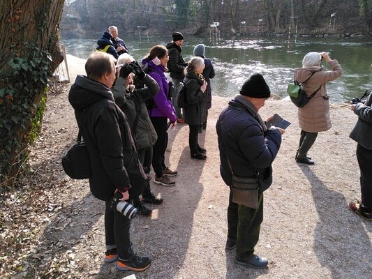 Am 16. Februar 2024 führte die versierte Biologin Maga Roya Payandeh 18 Teilnehmende im Rahmen von ,Schöpfung Erleben‘ wieder auf eine inspirierende Vogelwanderung entlang der Mur Richtung Süden zum Augarten. Im und über dem Wasser tummelten sich Gänsesäger, Mittelmeermöwen und Gebirgsstelzen.
