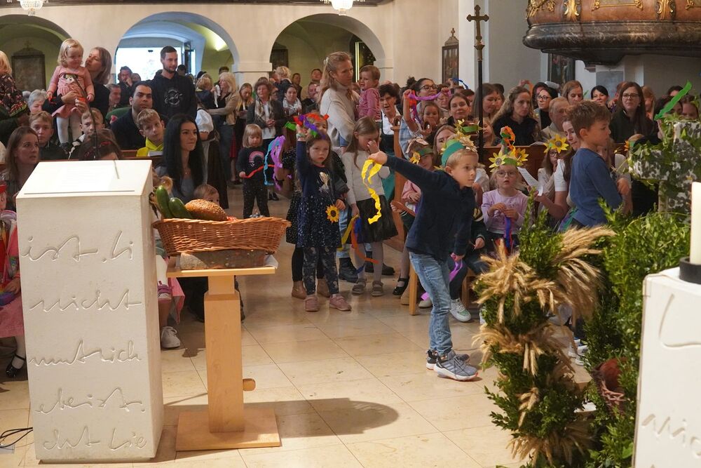 Ein herzliches Danke allen, die so schön mitgestaltet und mitgefeiert haben: Dies waren die Kindergartenkinder (Erntedank Tanz), die Minis und MS-Schüler*innen (Zeichenhandlung mit Erntegaben), die Landjugend (Erntekrone), die Musikgruppe (begeisternde Musik) und viele mehr.