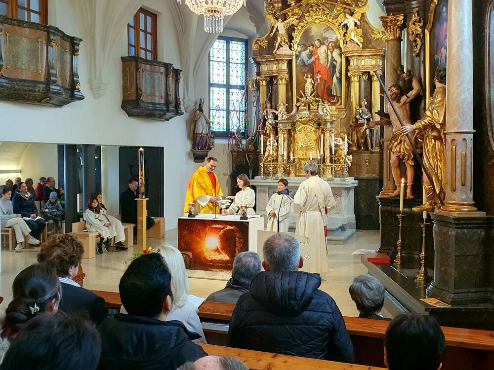 Am 22. April feierten die Erstkommunionkinder nach ihrem letzten Workshopnachmittag ihr Tauferneuerungsfest um 16:30 Uhr in unserer Pfarrkirche.