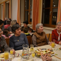 - Im Pfarrheim verwöhnten die hauptamtlichen Mitarbeiterinnen und Mitarbeiter alle Ehrenamtlichen mit Brötchen und Krapfen sowie mit Sekt und Orangensaft.