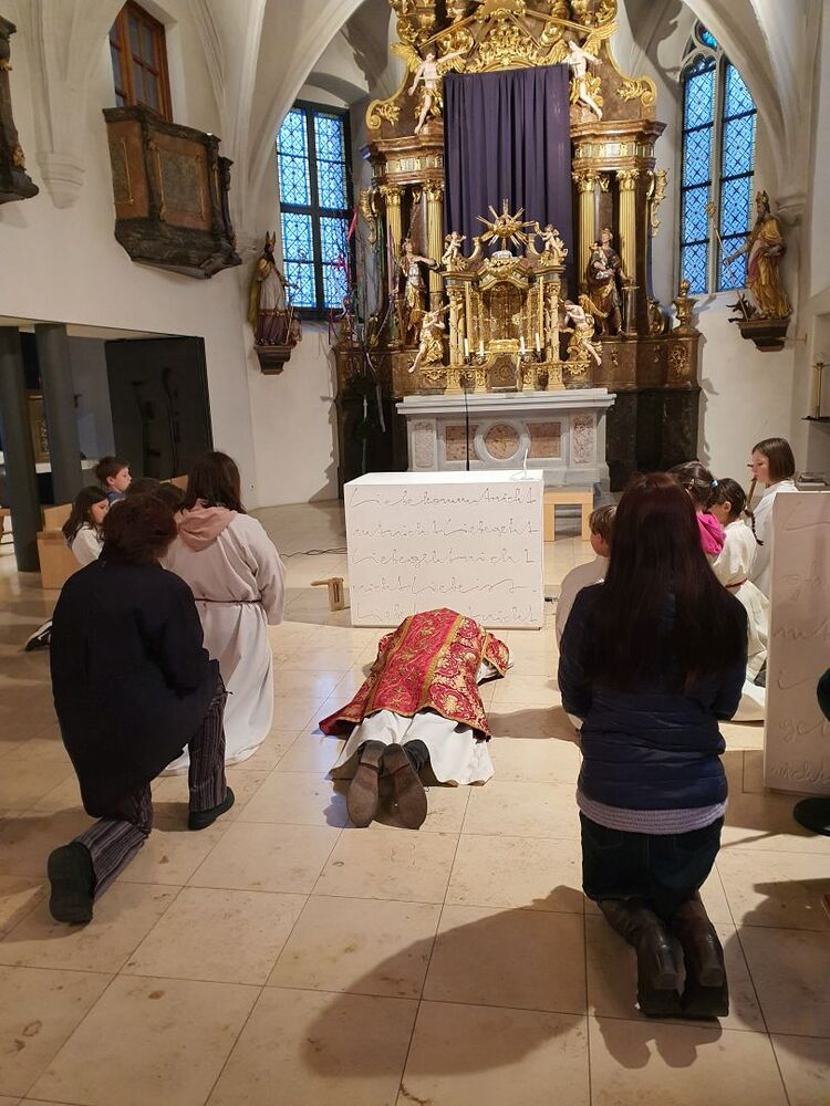 So viele Eltern begleiteten ihre Kinder und standen allen hilfreich zur Seite! Ein herzliches Danke dafür! Auch danke an Franziska Zachenegger und Cesar Cabesa, die die Kirchenführung mit den Kindern leiteten.